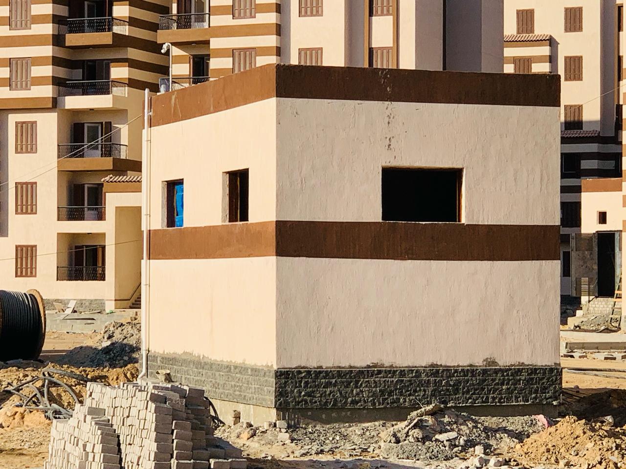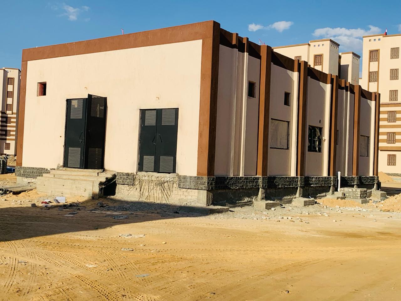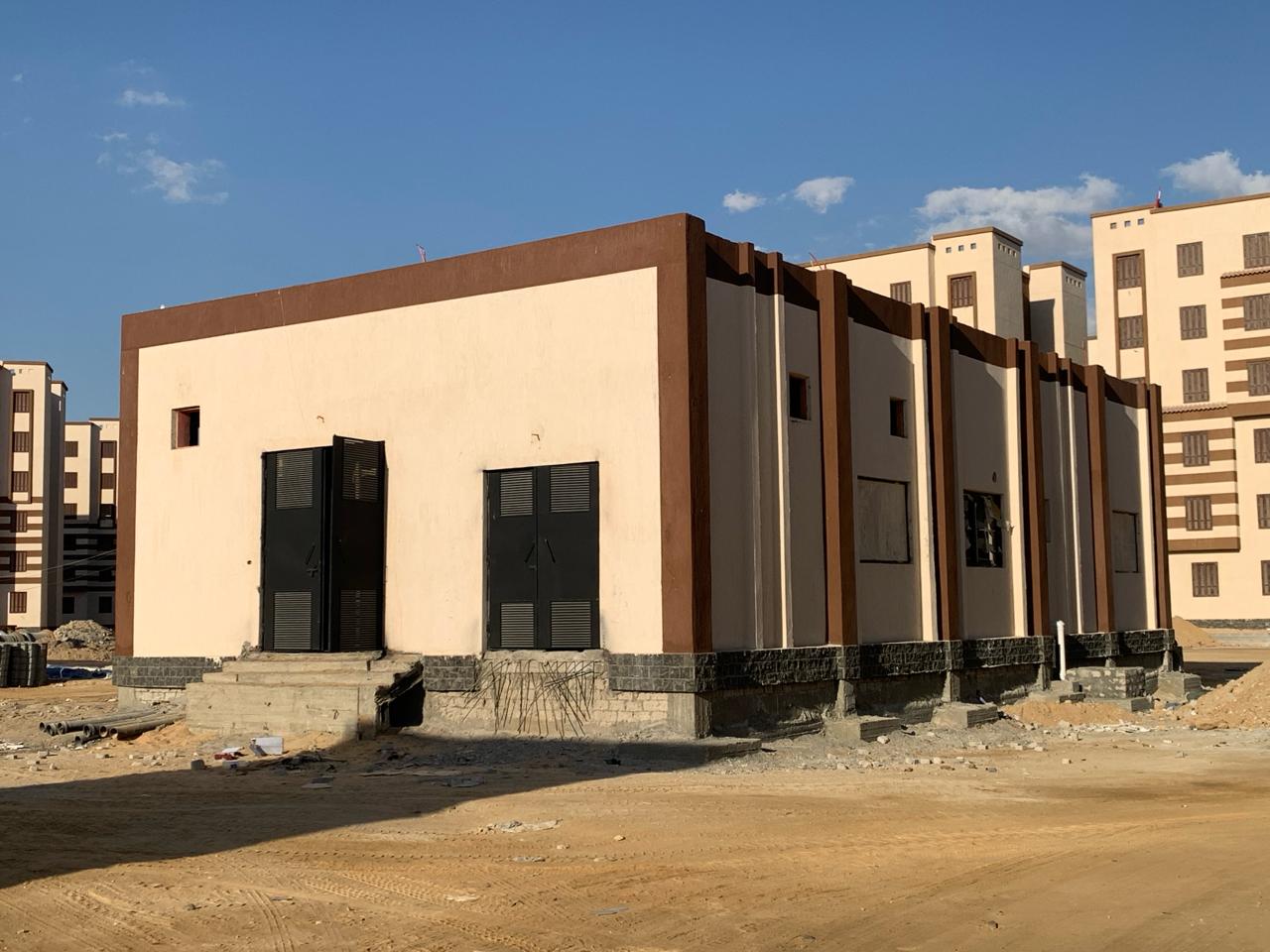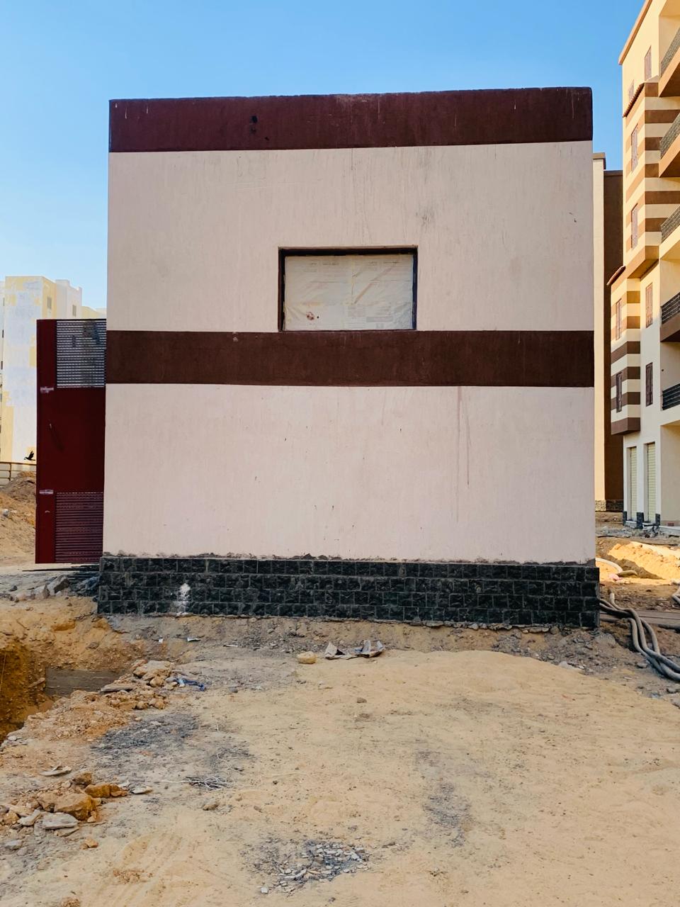 It contains a dry transformer with a capacity of (1 MVA) and a general low voltage panel and a ring connection unit panel to feed 7 to 8 buildings for each room