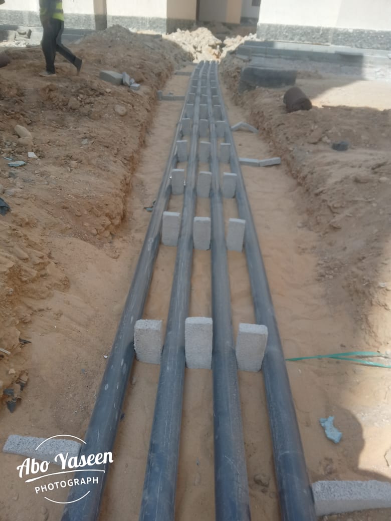 Excavation works and laying of low voltage cables were established to connect between the rooms and buildings with a total of 26000 m.t