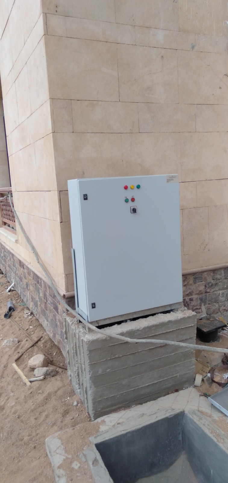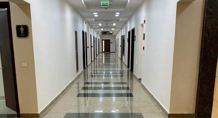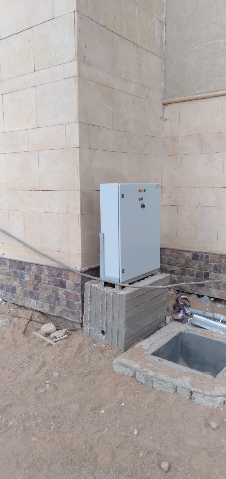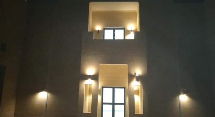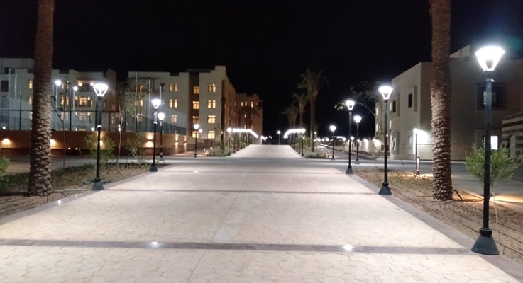 First, the distributor's building. A major distributed building was built with medium voltage (22 K). f) It contains 9 medium voltage cells to feed the project with one loop. Second: Transformer rooms/Four transformer rooms have been established. Two transformer rooms containing 2 dry converters (1.6MG). V.F. ' a) It contains two throat binding units, two generic low voltage plates and one generator (650 K). V.F. ' a) The number of emergency plates. Two transformer rooms containing 2 dry converters (1MB). V.F. ' a) It contains two throat binding units, two generic low voltage plates and one generator (500 K). V.F. ' a) the number of emergency plates. Third: medium and low voltage cable works. Excavation work and individual medium voltage aluminum cables armed with a total of 1100m were completed. i. Excavation work and low voltage aluminum cables armed with a total of 26132 m were completed. i. IV: Public Site Lighting Works. The Polard pole was installed at a height of 1 meter to light the university's walks with 300 poles. A total of 400 beams were installed to fire trees. Flood Light units have been installed to light the university's circular wall with a total of 30 alone. It was installed alone for the staircase with a total of 130 alone. Up & Down has been installed alone to light the walls and walls of the university with a total of 880 alone. A 6-metre-high street light pole has been installed, with a total of 200 poles. A 10-metre stadium light pole with 2 300W scouts with a total of 16 poles has been installed